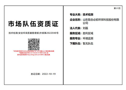 山東致合必拓環(huán)保科技股份有限公司成立于2015年3月,總投資3000萬元,是山東省市場監(jiān)管局計量認(rèn)證合格的第三方檢測機構(gòu),取得CMA資質(zhì)認(rèn)定,是省級專精特新企業(yè)、高新技術(shù)企業(yè)、是市級重合同守信用企業(yè)。